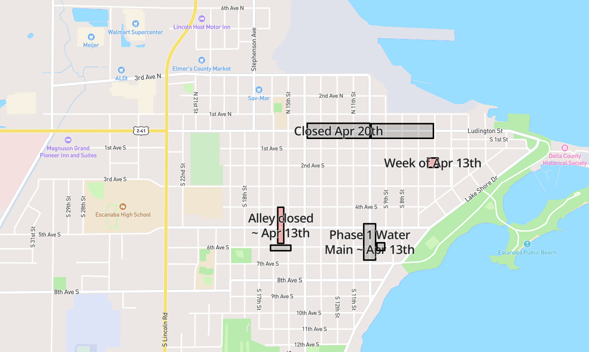 ESCANABA, Mich. (WBUP/WJMN) - A week before intense construction begins on Escanaba's Ludington Street, a variety of other streets will be closed for road work starting Monday, April 13.